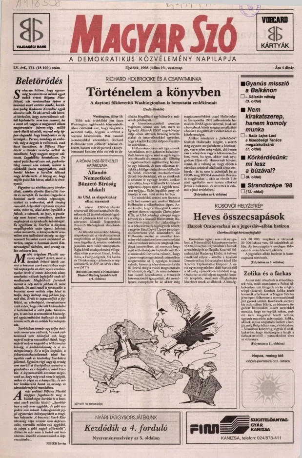Magyar Szó, 55. évf. 1998. július 19. 171. sz. 1–24. oldal