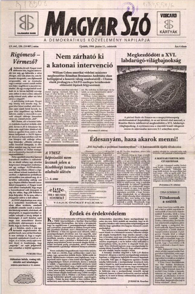 Magyar Szó, 55. évf. 1998. június 11. 138. sz. 1–16. oldal