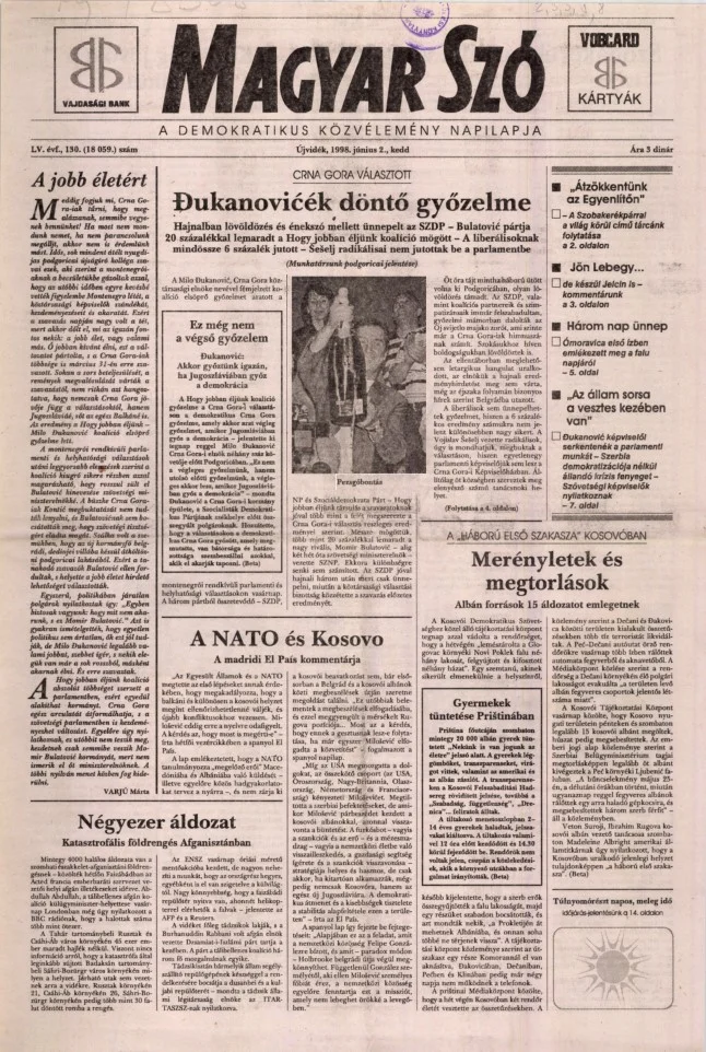 Magyar Szó, 55. évf. 1998. június 2. 130. sz. 1–16. oldal