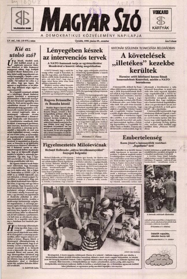 Magyar Szó, 55. évf. 1998. június 20. 146. sz. 1–16. oldal