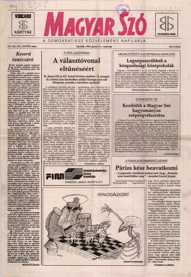 Magyar Szó, 55. évf. 1998. június 21. 147. sz. 1–24. oldal