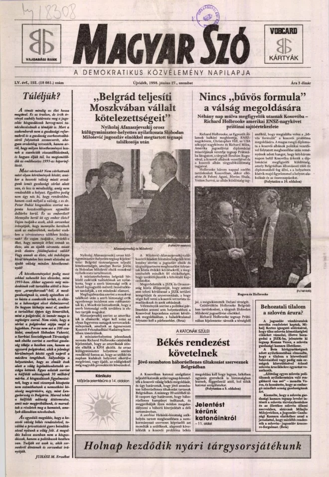 Magyar Szó, 55. évf. 1998. június 27. 152. sz. 1–16. oldal