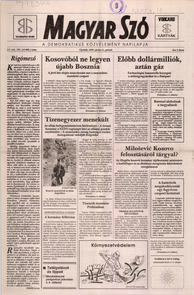 Magyar Szó, 55. évf. 1998. június 5. 133. sz. 1–16. oldal