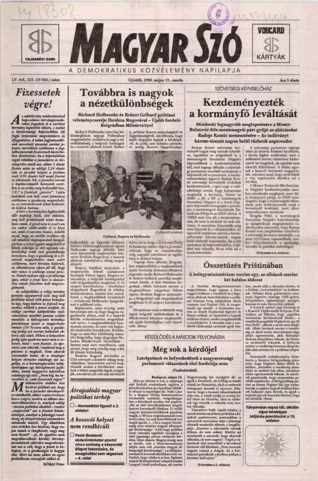 Magyar Szó, 55. évf. 1998. május 13. 113. sz. 1–16. oldal