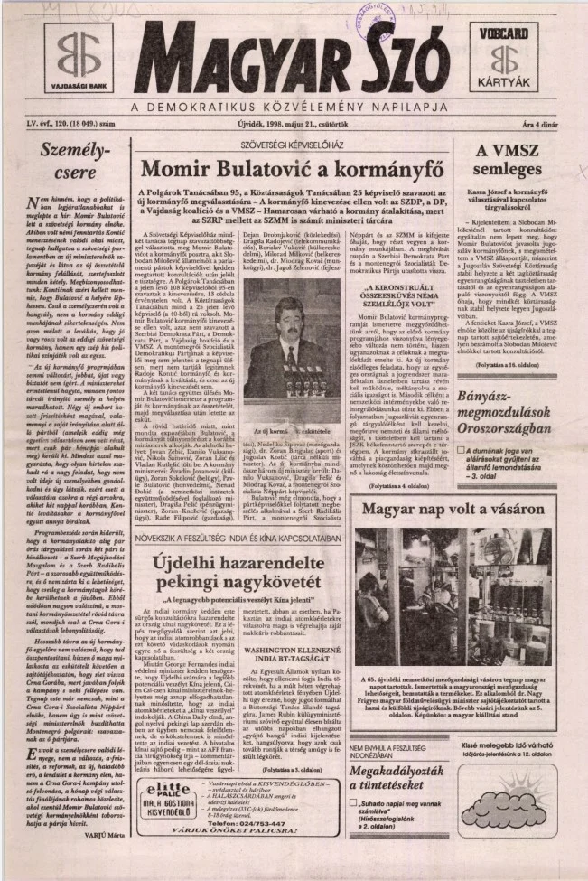 Magyar Szó, 55. évf. 1998. május 21. 120. sz. 1–16. oldal