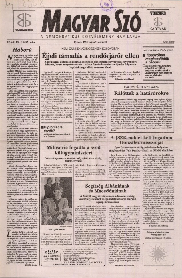 Magyar Szó, 55. évf. 1998. május 7. 108. sz. 1–16. oldal