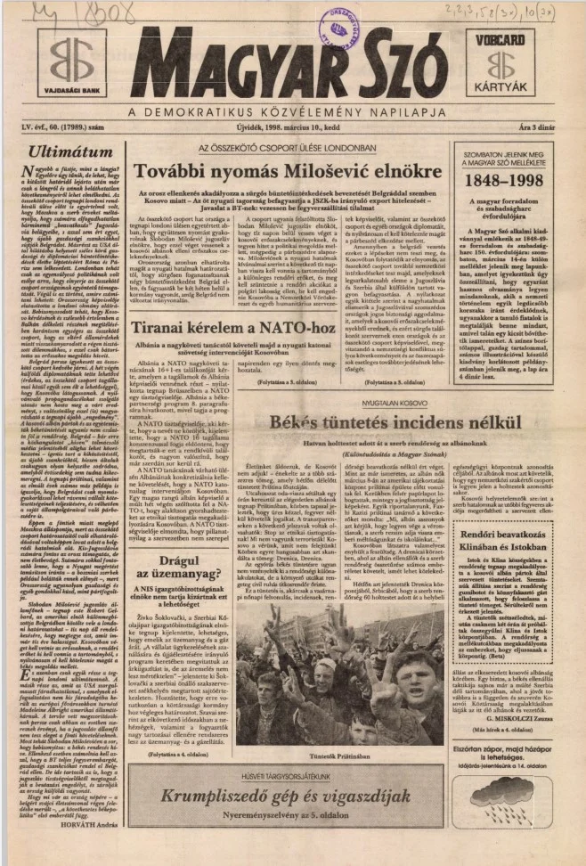 Magyar Szó, 55. évf. 1998. március 10. 60. sz. 1–16. oldal