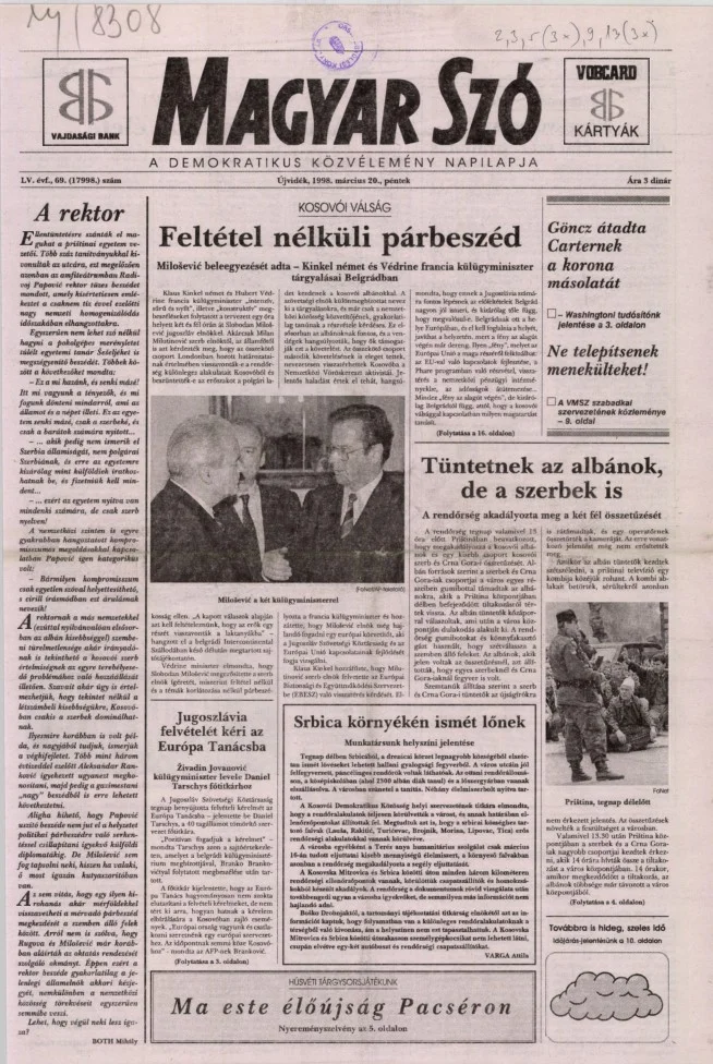 Magyar Szó, 55. évf. 1998. március 20. 69. sz. 1–16. oldal
