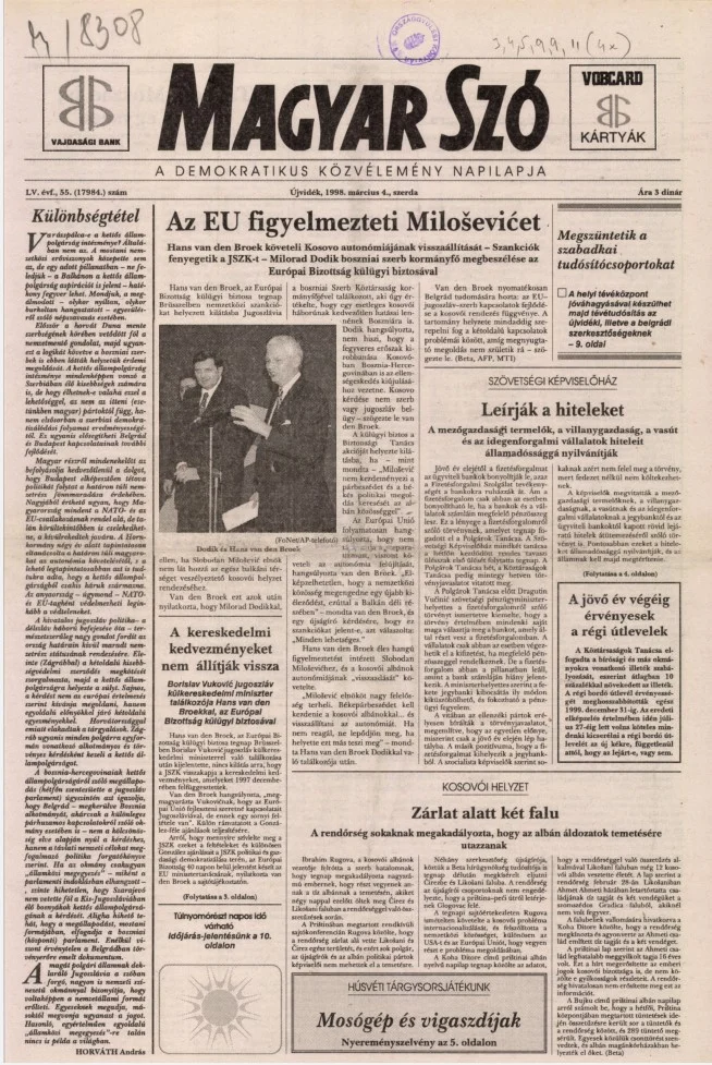 Magyar Szó, 55. évf. 1998. március 4. 55. sz. 1–16. oldal