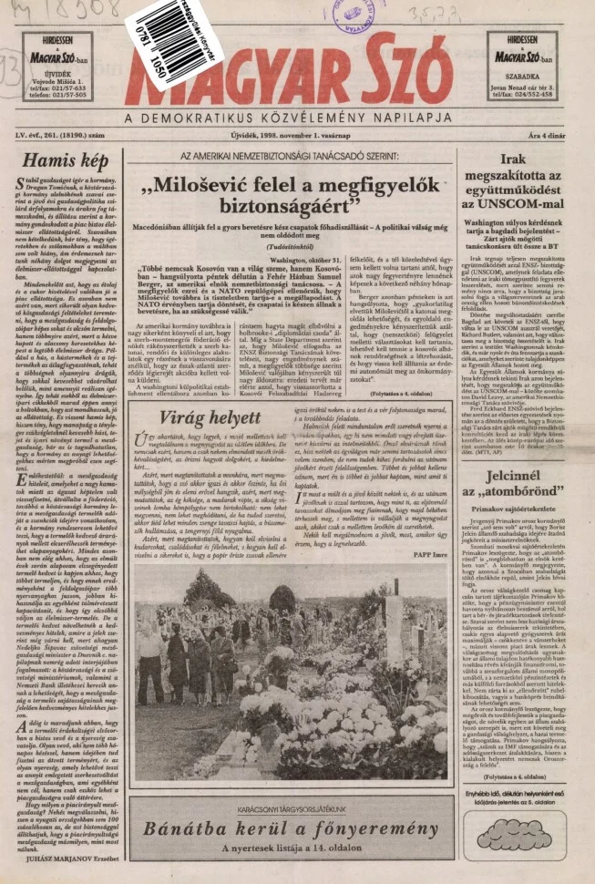 Magyar Szó, 55. évf. 1998. november 1. 261. sz. 1–24. oldal