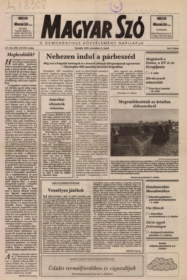 Magyar Szó, 55. évf. 1998. november 3. 262. sz. 1–16. oldal