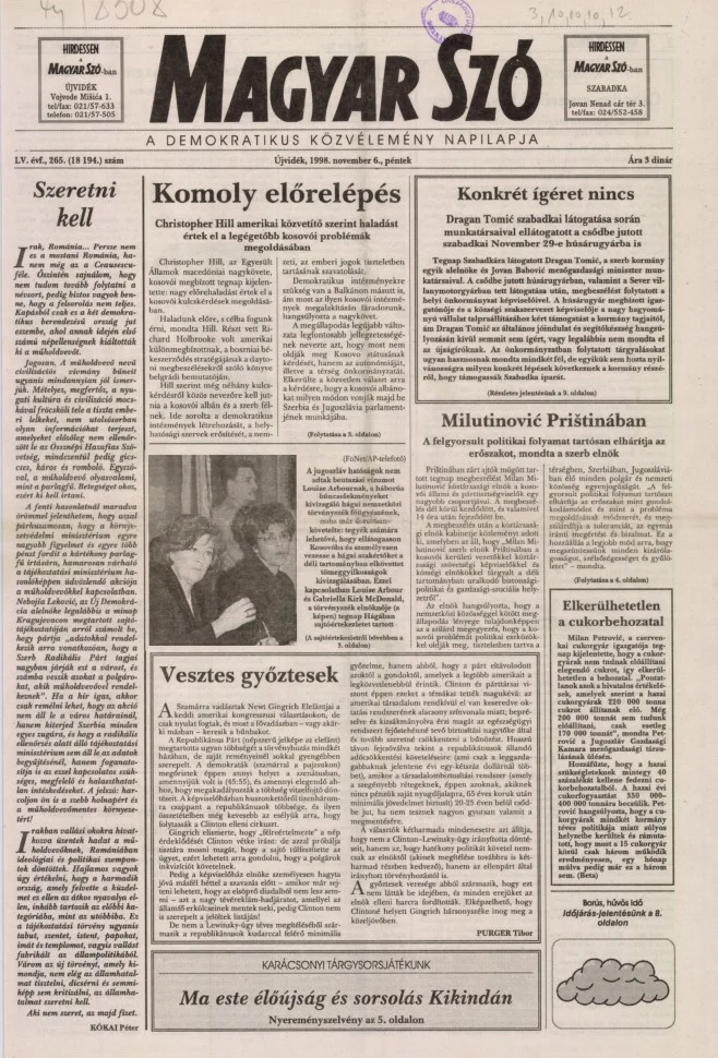 Magyar Szó, 55. évf. 1998. november 6. 265. sz. 1–16. oldal