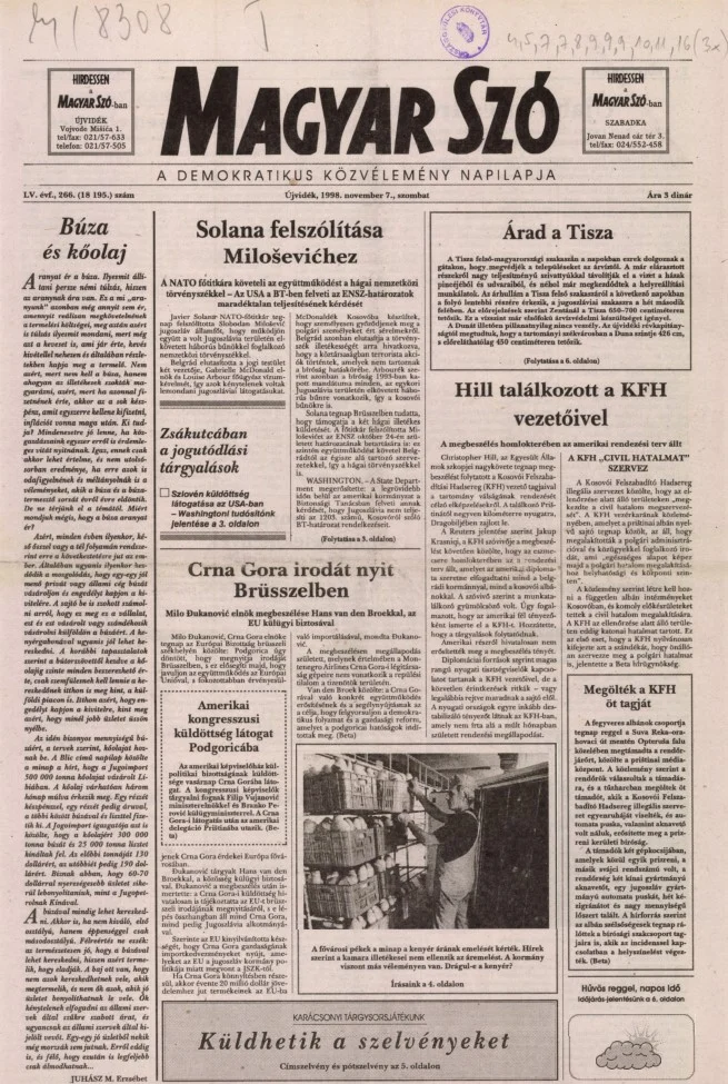 Magyar Szó, 55. évf. 1998. november 7. 266. sz. 1–16. oldal