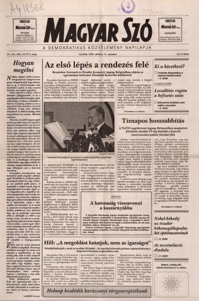 Magyar Szó, 55. évf. 1998. október 17. 248. sz. 1–16. oldal