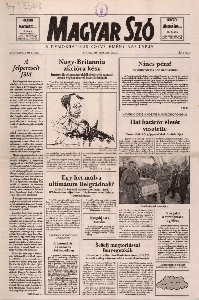 Magyar Szó, 55. évf. 1998. október 2. 235. sz. 1–16. oldal