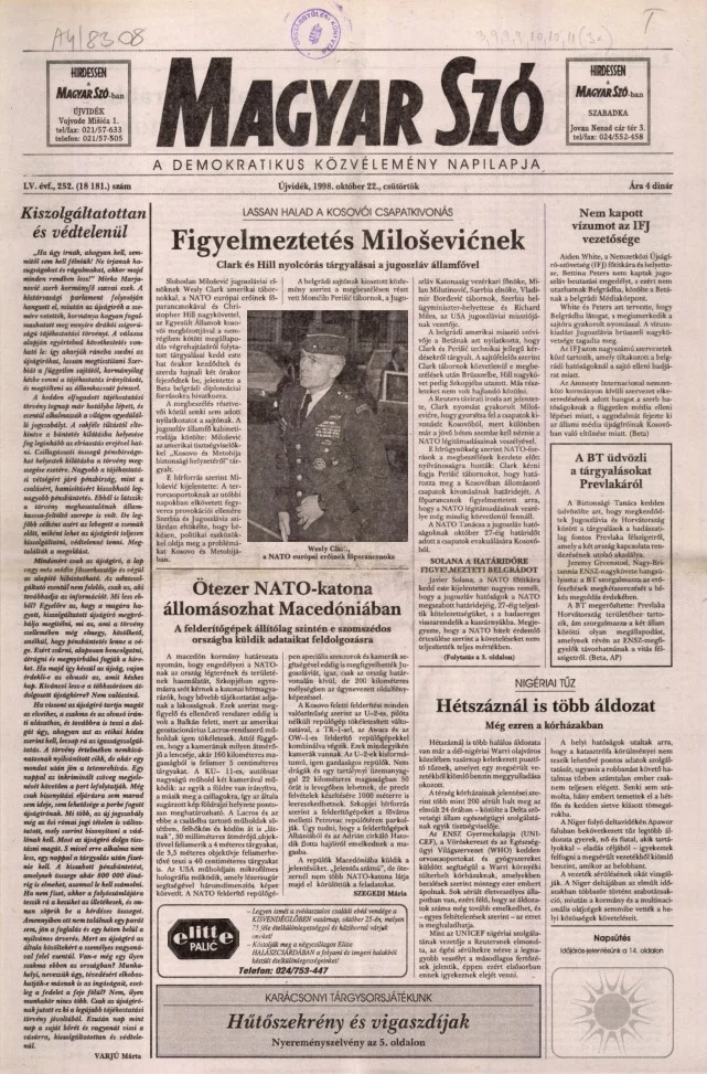 Magyar Szó, 55. évf. 1998. október 22. 252. sz. 1–16. oldal