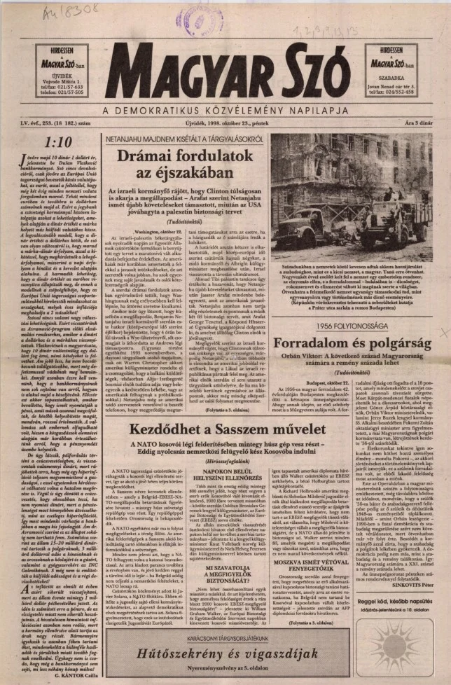 Magyar Szó, 55. évf. 1998. október 23. 253. sz. 1–16. oldal