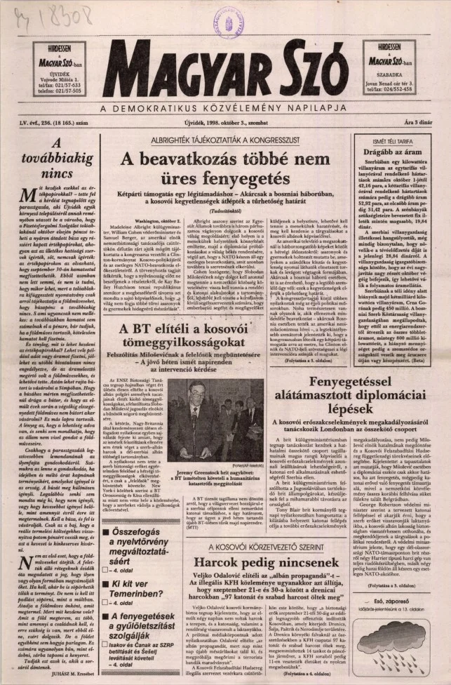 Magyar Szó, 55. évf. 1998. október 3. 236. sz. 1–16. oldal