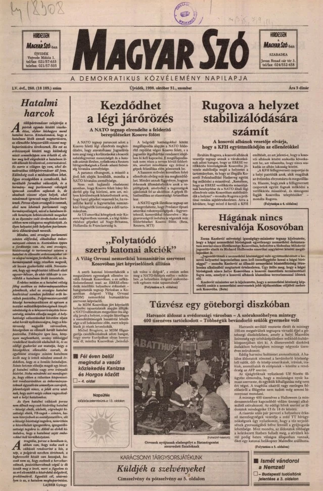 Magyar Szó, 55. évf. 1998. október 31. 260. sz. 1–16. oldal