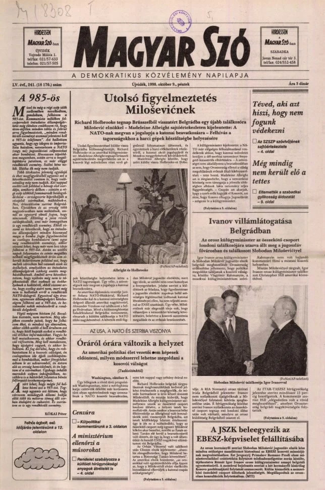 Magyar Szó, 55. évf. 1998. október 9. 241. sz. 1–16. oldal