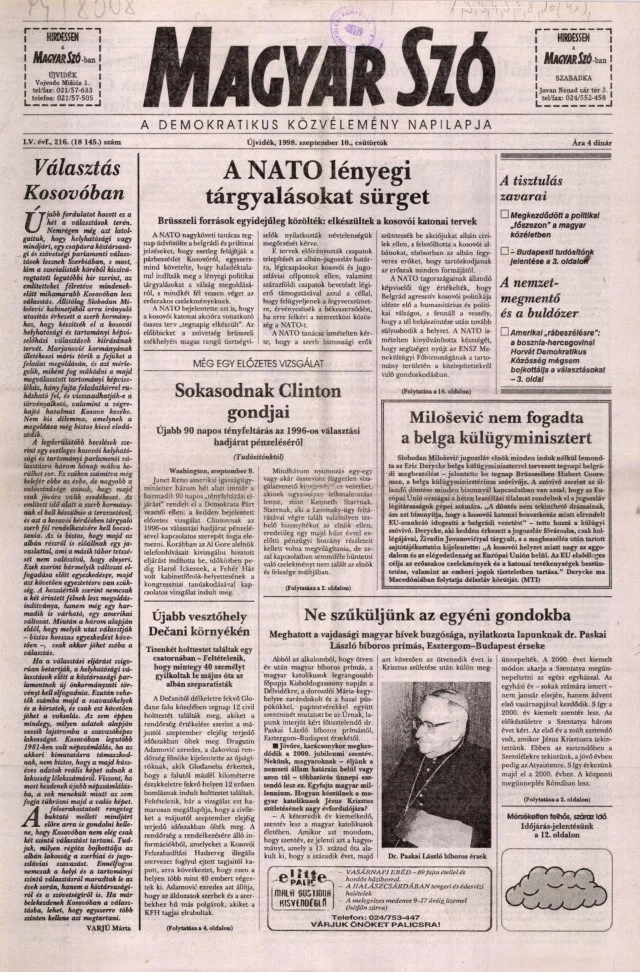 Magyar Szó, 55. évf. 1998. szeptember 10. 216. sz. 1–16. oldal