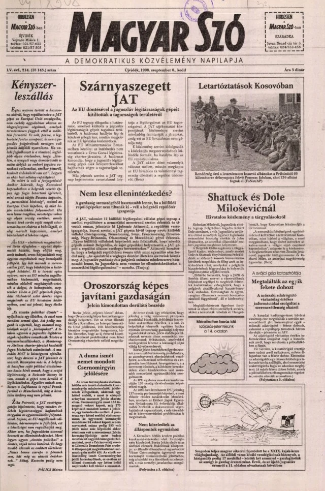 Magyar Szó, 55. évf. 1998. szeptember 8. 214. sz. 1–16. oldal