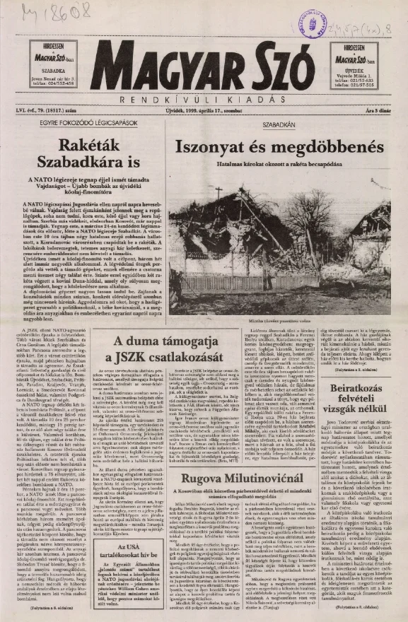 Magyar Szó, 56. évf. 1999. április 17. 79. sz. 1–8. oldal