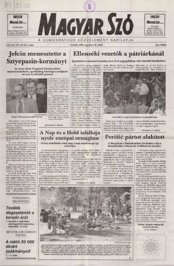 Magyar Szó, 56. évf. 1999. augusztus 10. 177. sz. 1–16. oldal
