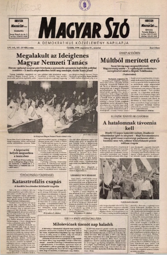 Magyar Szó, 56. évf. 1999. augusztus 21. 187. sz. 1–16. oldal