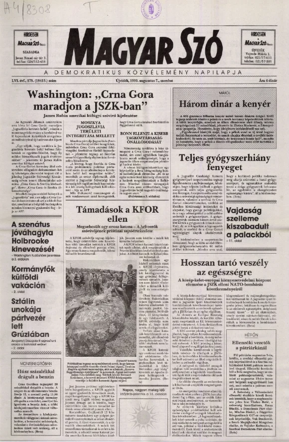 Magyar Szó, 56. évf. 1999. augusztus 7. 175. sz. 1–16. oldal