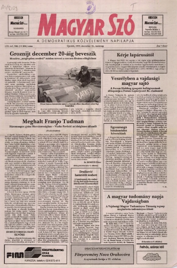 Magyar Szó, 56. évf. 1999. december 12. 246. sz. 1–24. oldal