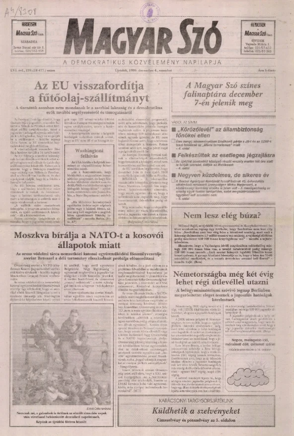 Magyar Szó, 56. évf. 1999. december 4. 239. sz. 1–16. oldal
