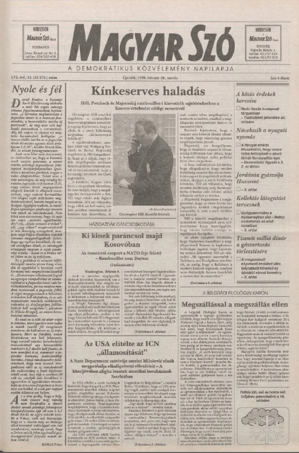 Magyar Szó, 56. évf. 1999. február 10. 32. sz. 1–16. oldal