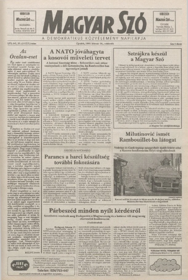 Magyar Szó, 56. évf. 1999. február 18. 39. sz. 1–16. oldal