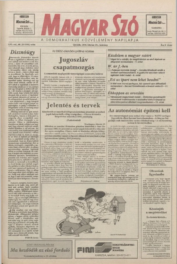 Magyar Szó, 56. évf. 1999. február 28. 46. sz. 1–32. oldal