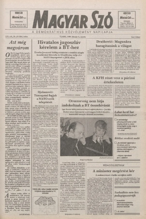Magyar Szó, 56. évf. 1999. február 3. 26. sz. 1–16. oldal