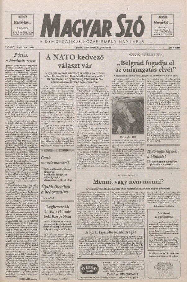 Magyar Szó, 56. évf. 1999. február 4. 27. sz. 1–16. oldal
