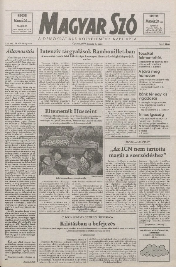 Magyar Szó, 56. évf. 1999. február 9. 31. sz. 1–16. oldal