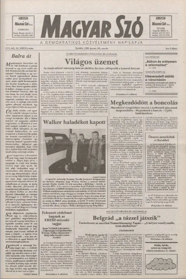 Magyar Szó, 56. évf. 1999. január 20. 14. sz. 1–16. oldal