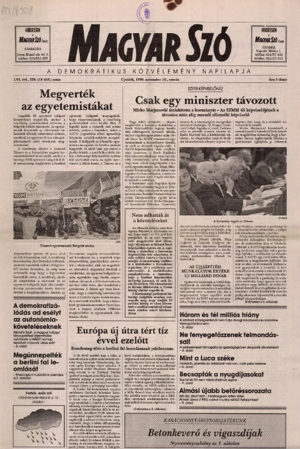 Magyar Szó, 56. évf. 1999. november 10. 220. sz. 1–16. oldal