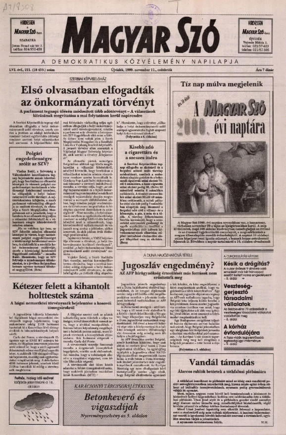 Magyar Szó, 56. évf. 1999. november 11. 221. sz. 1–16. oldal