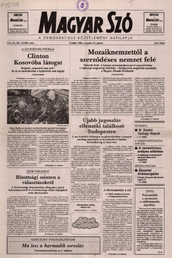 Magyar Szó, 56. évf. 1999. november 12. 222. sz. 1–16. oldal