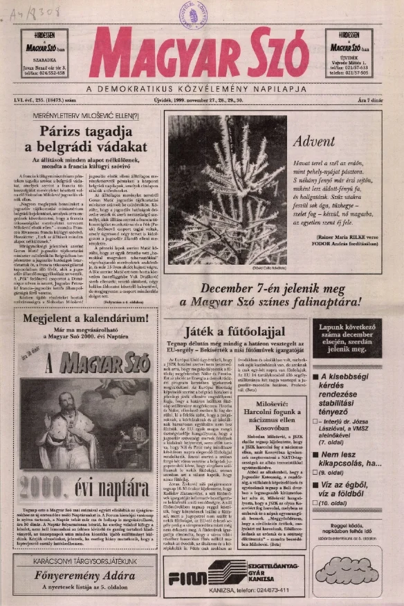 Magyar Szó, 56. évf. 1999. november 27. – 30. 235. sz. 1–24. oldal
