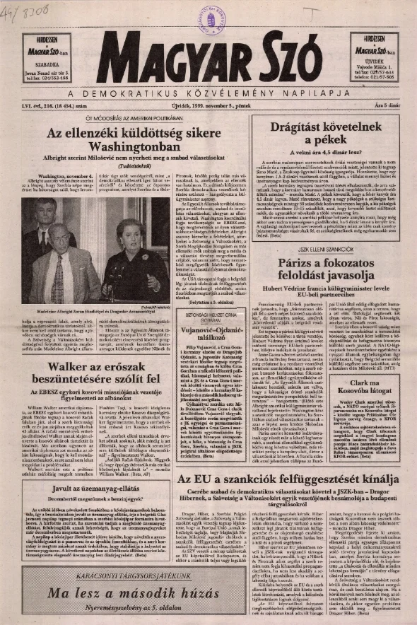 Magyar Szó, 56. évf. 1999. november 5. 216. sz. 1–16. oldal