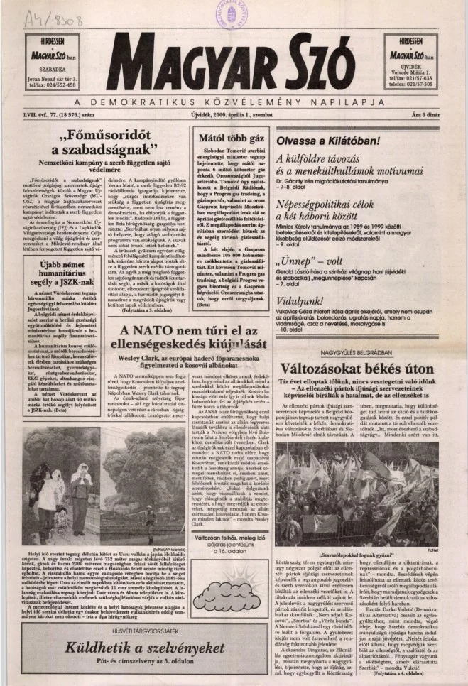 Magyar Szó, 57. évf. 2000. április 1. 77. sz. 1–16. oldal
