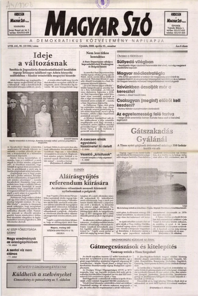 Magyar Szó, 57. évf. 2000. április 22. 95. sz. 1–16. oldal