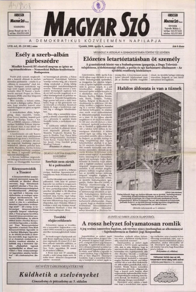 Magyar Szó, 57. évf. 2000. április 8. 83. sz. 1–16. oldal