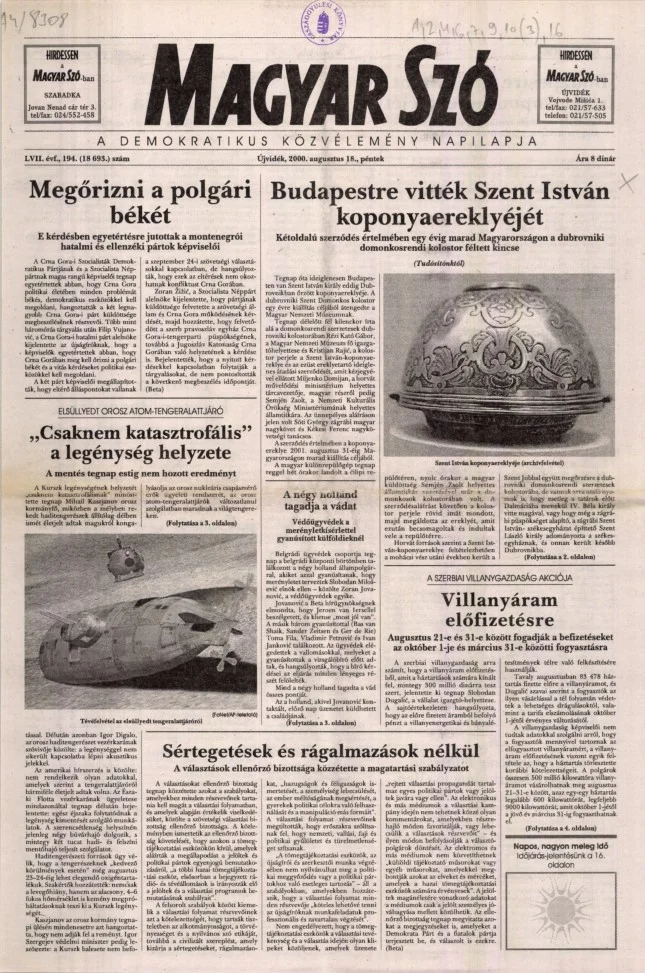 Magyar Szó, 57. évf. 2000. augusztus 18. 194. sz. 1–16. oldal
