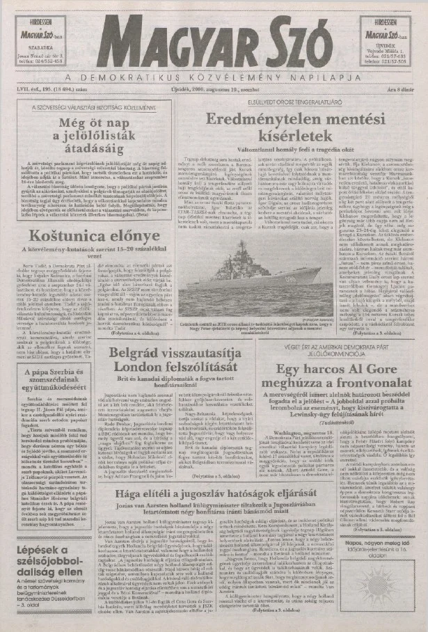 Magyar Szó, 57. évf. 2000. augusztus 19. 195. sz. 1–16. oldal