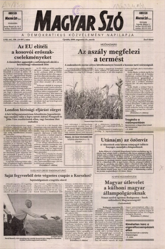 Magyar Szó, 57. évf. 2000. augusztus 23. 198. sz. 1–16. oldal